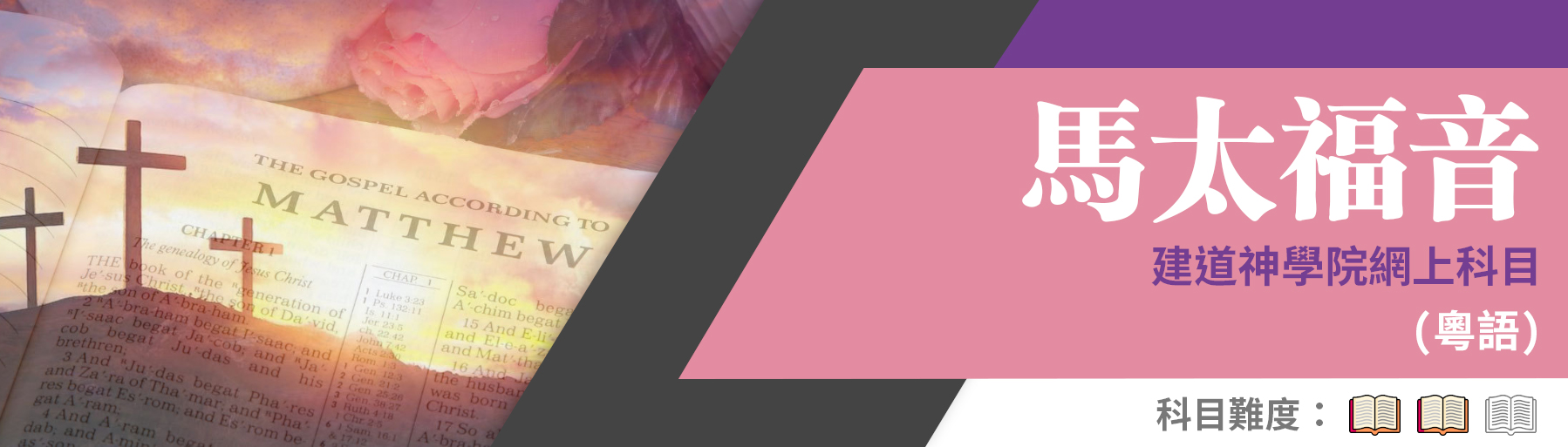 本課程藉著研究馬太福音的背景,結構,文學特色等課題,探討馬太福音的信息及神學,特別著重馬太福音的信息如何發展至最後大使命的結局,也藉此使同學掌握新約福音書研讀的方法。