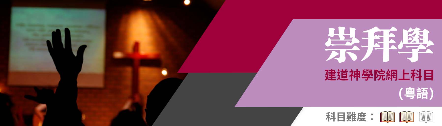 崇拜是上帝對人的牧養,也是人向上帝歌頌的回應,並以信、望和愛的生活作迴響,好顯揚上帝的真善美。本課程將結合崇拜裡的主要元素,例如 敬拜、講道、及教會音樂,並從聖經、歷史、神學、理論和實踐角度,提供有關崇拜的各種思考和理解。當中更探討群體與崇拜的關係,特別是從侯活士(Stanley Hauerwas)群體神學中「重思、重建和重整」崇拜,設計的進路注重神學、群體文化對話,幫助同學以合乎群體與崇拜的神學理念來更新和編排崇拜。